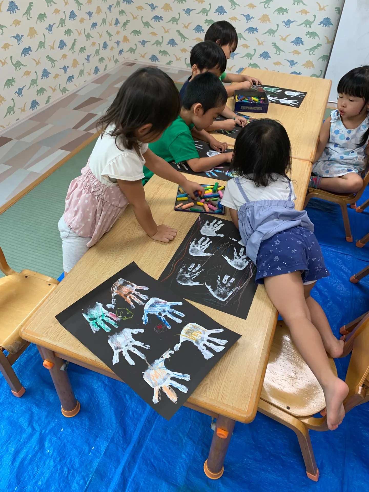自分たちの色塗りをした絵が飾られると、その絵に対してコメントしたり。